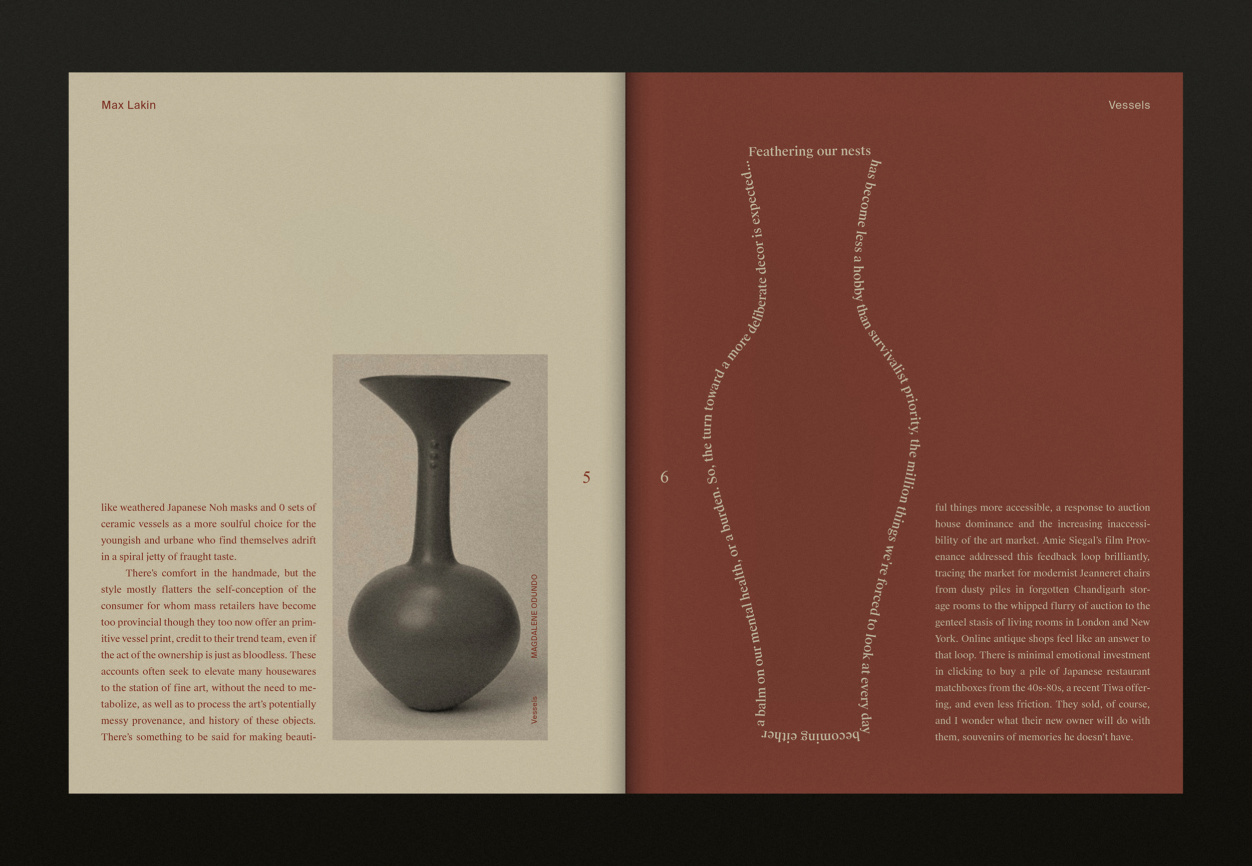 Experimental spread design inspired by the history of vases through the lens of museum archeology.